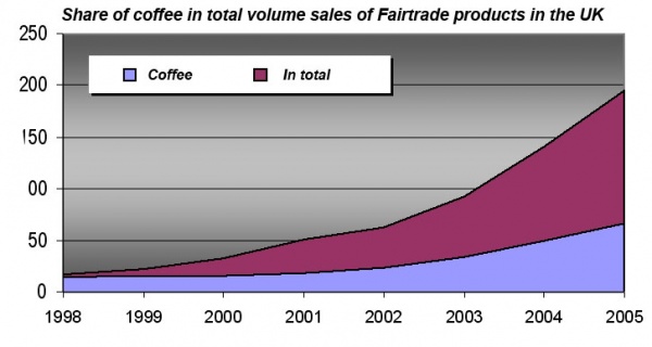 Market changes came also in favor of Fairtrade producers. Demand for quality grain has increased, especially due to changes in the consumption of coffee. Coffee sales through supermarkets in the U.S. market declined relatively compared to sales of specialized coffee chains (Coffee to go) like Starbucks. These chains just need all of their coffee flavors, in order to create special mixtures, and the price here is much less important than it is the case with the sale through the supermarkets. Large plantations are not able to deliver not nearly as high quality coffee as it can be done by small producers organized in cooperatives. This opportunity was "grabbed" by fair trade organizations. On the other hand, small manufacturers had a strong incentive in the late eighties to work with Fair Trade organizations because then the price of coffee fell to a record low, well below the cost of production due to Vietnam's entry into production and significant progress in the technology of work on plantations in Brazil. During the nineties the world scale production of coffee jumped by about 17% while demand fell by almost 11%.
